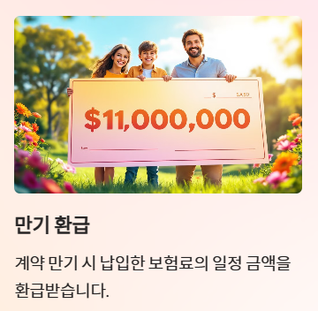 계약 만기 시 목돈을 받을 수 있어 장기적인 저축이나 재정 계획에 유용합니다. - 보장과 저축의 동시 실현