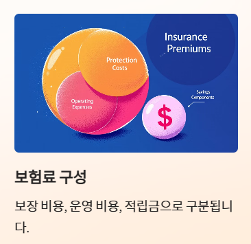 보험료는 크게 보장 비용, 운영 비용, 그리고 적립금으로 구분됩니다. 보장 비용은 보장성 보험의 본질적인 역할을 담당하며, 운영 비용은 보험사의 관리 및 투자 운영에 사용됩니다. 적립금은 계약 만기 시 환급금을 마련하기 위해 사용됩니다. - 보험사의 운용 방식