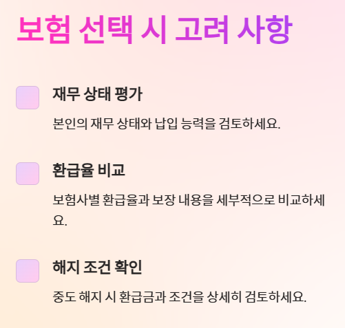 본인의 재무 상태와 보험료를 납입할 수 있는 능력을 검토하세요. - 환급율 비교