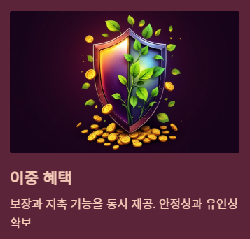 - 이중 혜택: 보장과 함께 저축 기능을 제공하여 안정성과 유연성을 동시에 확보합니다.