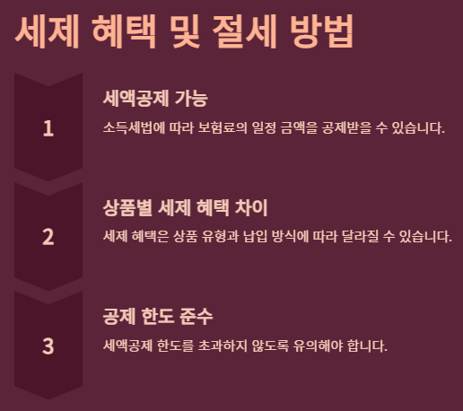 - 세액공제 가능: 소득세법에 따라 보험료의 일정 금액을 공제받을 수 있습니다.