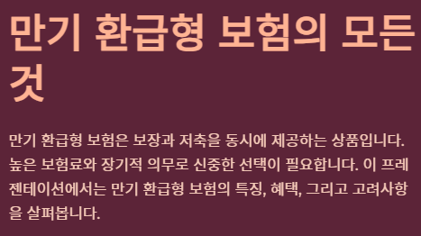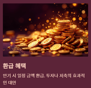 - 환급 혜택: 만기 시 일정 금액을 환급받아, 투자나 저축의 대안으로 활용할 수 있습니다.