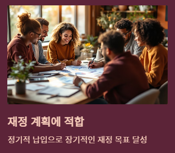 - 장기적 재정 목표가 있는 경우: 목돈 마련과 안정적인 재정 관리를 원하는 사람들에게 이상적입니다.