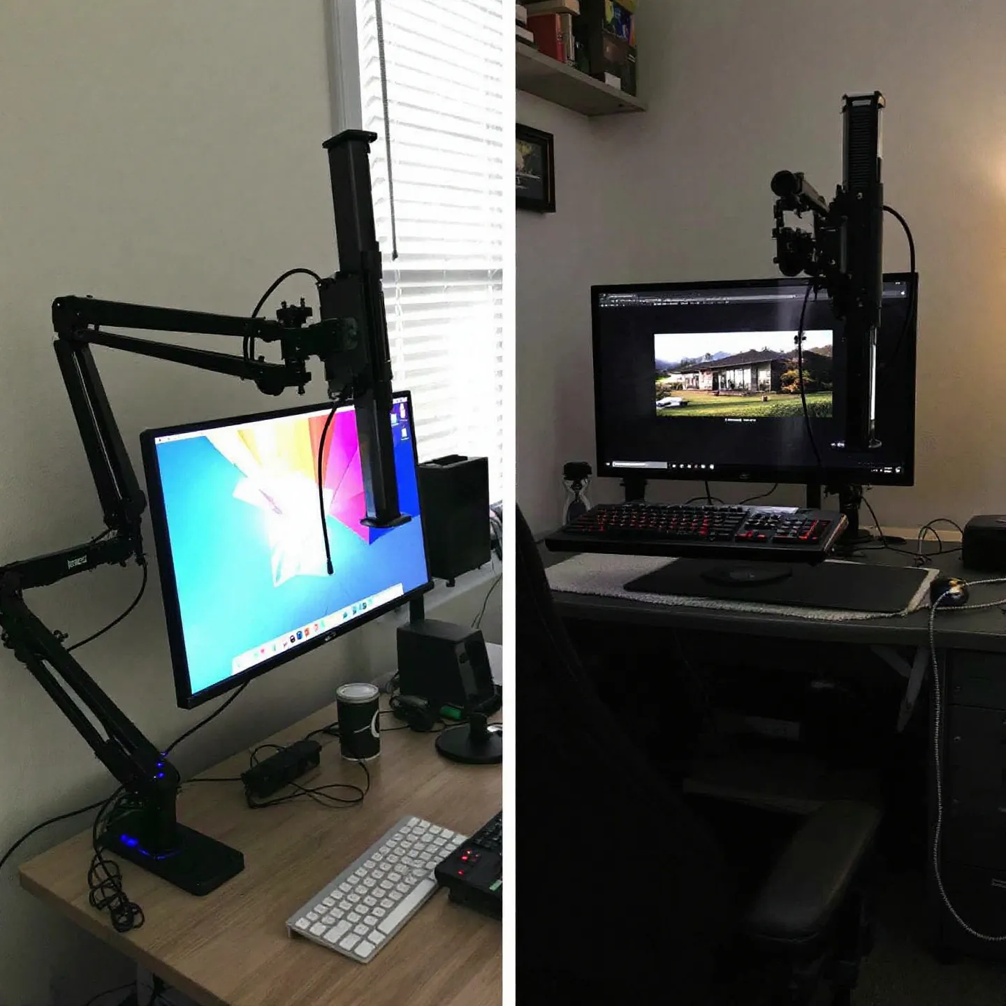모니터암의 설치는 책상 두께와 VESA 규격 호환성이 핵심입니다. USB 허브나 케이블 정리를 고려한 설치 계획이 필요하며, 특히 듀얼 모니터 설치 시에는 공간 배치를 신중히 고려해야 합니다.