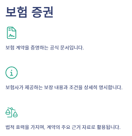 보험 증권은 보험 계약을 증명하는 공식 문서로, 보험사가 제공하는 보장 내용과 조건을 상세히 명시한 서류입니다. 이 문서에는 보험 가입자의 이름, 보험사 정보, 보장 범위, 보험료, 납부 조건, 계약 기간 등의 필수적인 내용이 포함되어 있습니다. 보험 증권은 법적 효력을 가지며, 계약의 주요 근거 자료로 활용됩니다.