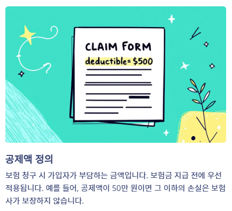 공제액은 보험 청구 시 가입자가 자비로 부담해야 하는 금액으로, 보험금이 지급되기 전에 우선적으로 적용됩니다. 예를 들어, 공제액이 50만 원이라면 그 이하의 손실은 보험사가 보장하지 않습니다.