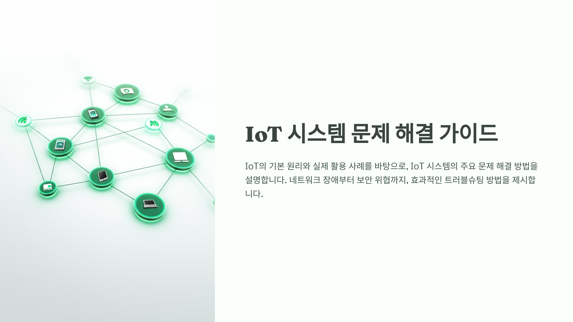 IoT의 기본 원리와 실제 활용 사례를 바탕으로, IoT 시스템에서 발생하는 주요 문제들의 해결 방법을 체계적으로 설명합니다. 네트워크 장애부터 보안 위협까지, 효과적인 트러블슈팅 방법을 제시합니다.