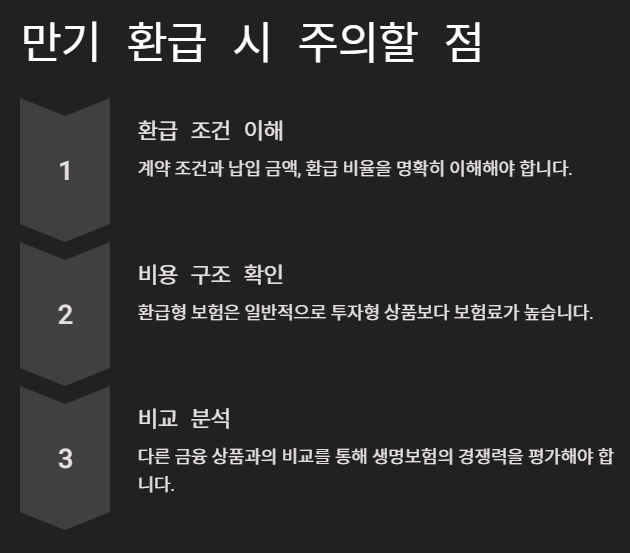 만기 환급 옵션을 선택하고 실행할 때 주의해야 할 몇 가지 사항이 있습니다. 이를 고려하지 않으면 기대했던 혜택을 누리지 못할 수 있습니다.