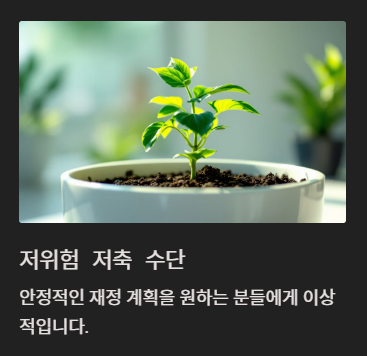 투자형 상품에 비해 위험이 적어 보수적인 투자자나 안정적인 재무 계획을 선호하는 사람들에게 적합합니다. - 자금의 활용성: