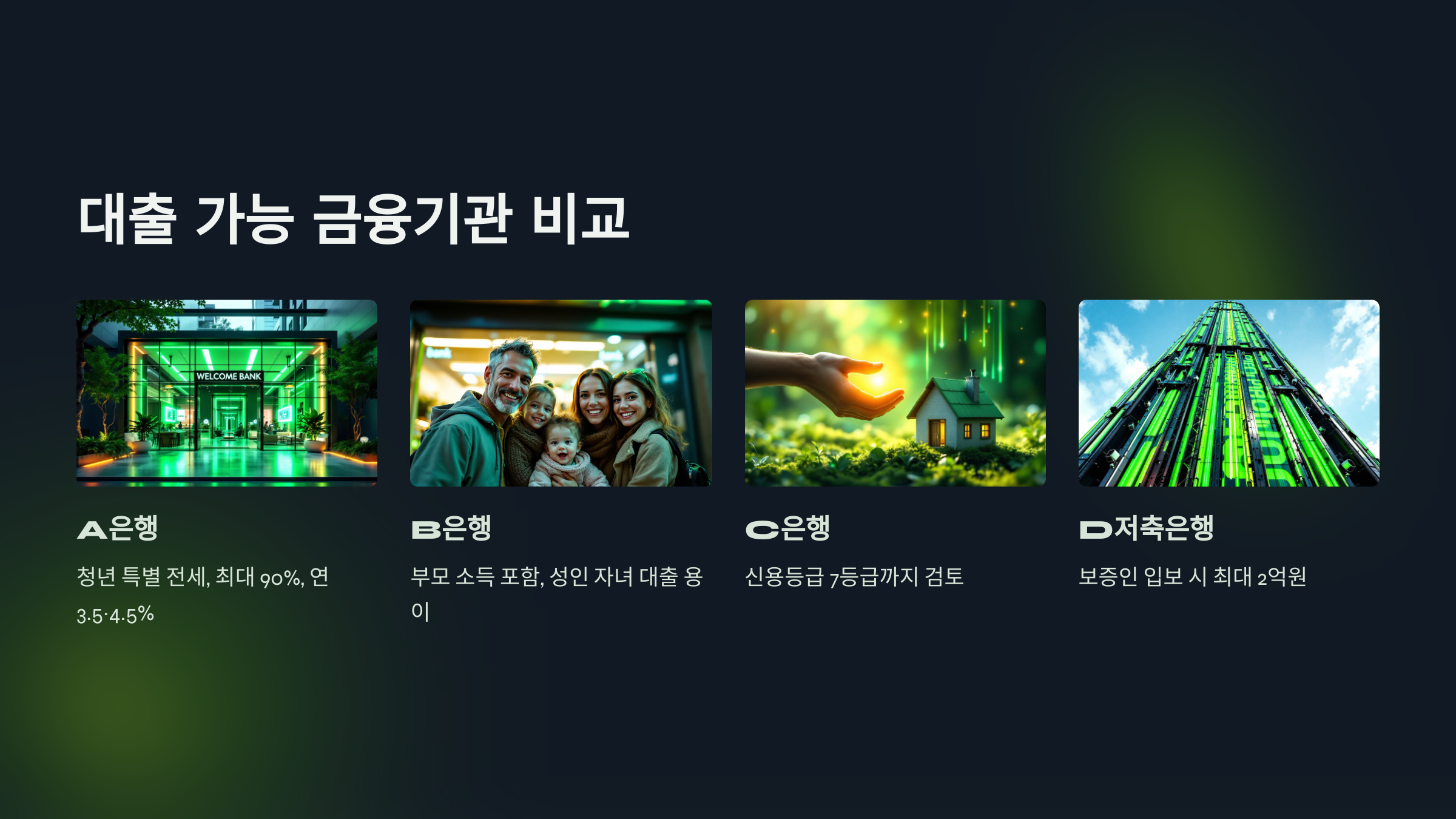 소득 없는 전세 대출을 취급하는 주요 금융기관들이 있습니다. A은행은 청년 특별 전세 프로그램을 통해 최대 90%까지 대출을 제공하며, 금리는 연 3.5~4.5% 수준입니다. B은행의 경우 부모 소득을 심사 기준에 포함시킬 수 있어 성인 자녀의 대출이 용이하며, C은행은 신용등급 7등급까지 대출을 검토합니다. D저축은행은 보증인 입보 시 소득 증빙 없이도 최대 2억원까지 대출이 가능합니다.