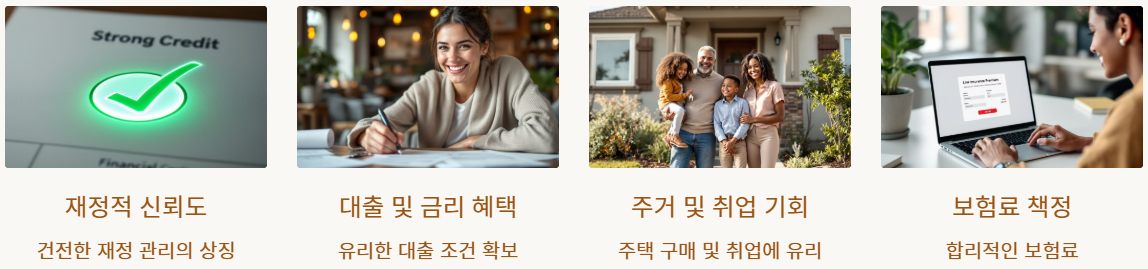 신용 점수는 개인의 재정적 기회뿐 아니라 일상생활에도 직접적인 영향을 미칩니다.