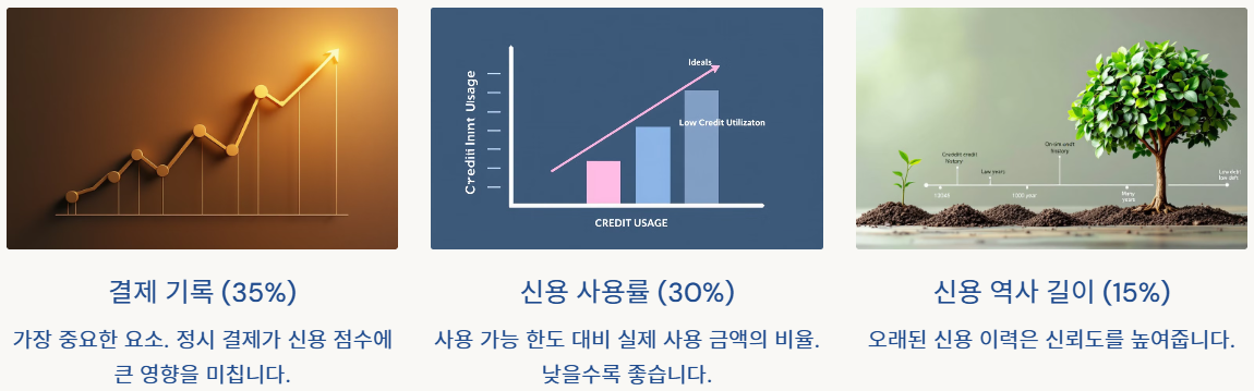 A: 정시 결제, 낮은 신용 사용률, 신용 기록 유지가 핵심입니다.