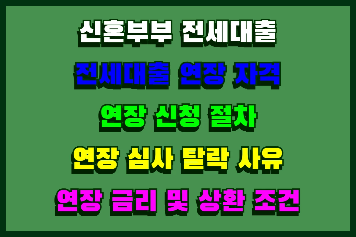 신혼부부 전세대출 연장 절차는 생각보다 세심한 준비가 필요합니다. 특히 전세계약 갱신과 대출 연장 시점을 잘 조율해야 하며, 필요 서류를 미리 준비해두는 것이 중요합니다.