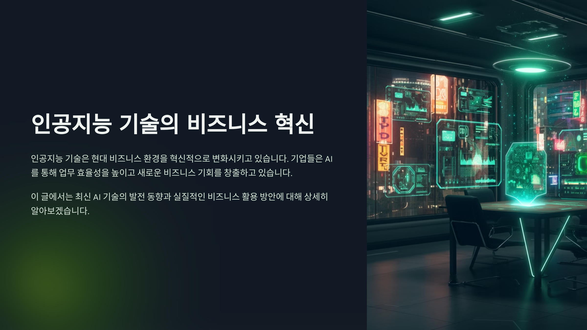 인공지능 기술은 현대 비즈니스 환경을 혁신적으로 변화시키고 있습니다. 기업들은 AI를 통해 업무 효율성을 높이고 새로운 비즈니스 기회를 창출하고 있습니다. 이 글에서는 최신 AI 기술의 발전 동향과 실질적인 비즈니스 활용 방안에 대해 상세히 알아보겠습니다.