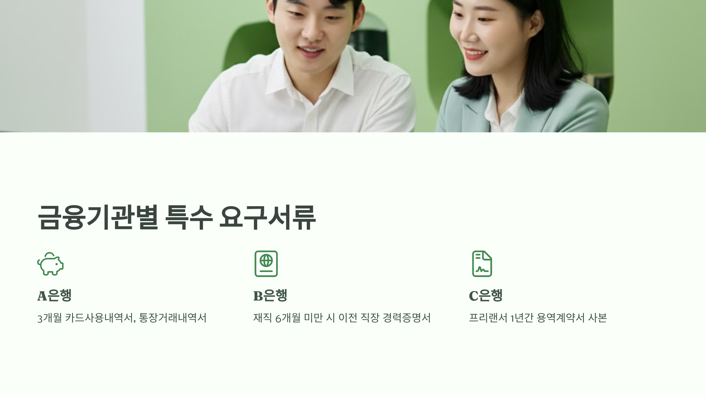 전월세 대출 취급 금융기관마다 요구하는 특수 서류가 있습니다. A은행의 경우 청년전용 전월세 대출 시 직전 3개월간의 카드사용내역서와 통장거래내역서를 요구하며, B은행은 재직기간 6개월 미만인 경우 이전 직장의 경력증명서를 추가로 요청합니다. C은행은 프리랜서의 경우 최근 1년간의 용역계약서 사본을 모두 제출해야 하며, D저축은행은 신용등급에 따라 추가 보증인 관련 서류를 요구할 수 있습니다.