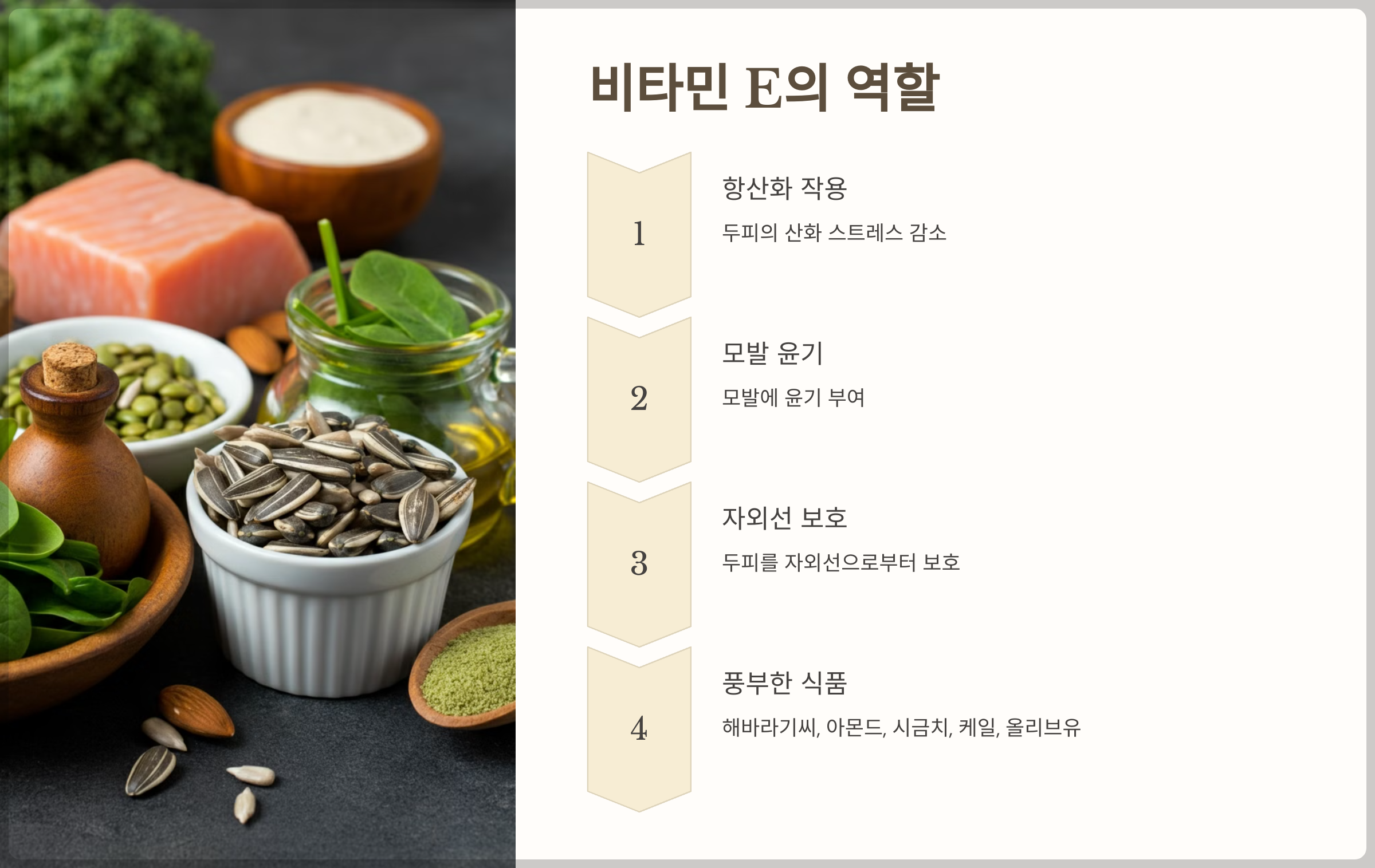 6. 비타민 E – 항산화 작용으로 두피 세포 보호